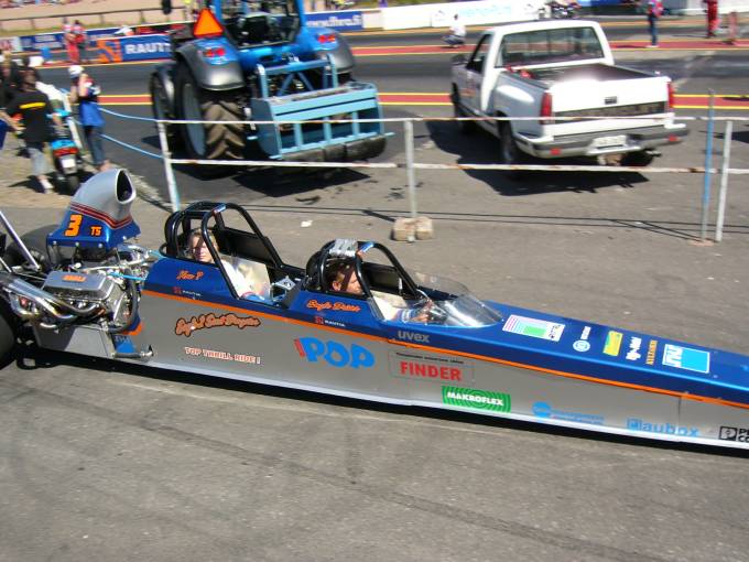 Janne Ahosen vaimo sai maistaa vauhtia Alastarossa Nitro Nationalsien yhteydessä Eagle -tiimin 2 -paikkaisella dragsterillä. Tämäkin veto oli muistaakseni 8 sekunnin luokkaa, aika harva tyttö on mennyt näin kovaa...