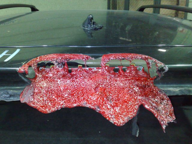 In the series "Strange shots" we present the reason for grinding Torino to the plain sheet metal: Filler had been painted directly over the sheet metal and consequences are obvious. Rust started to form between filler and steel.