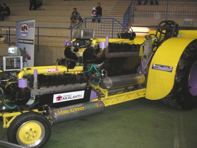 I photographed this tractor pulling monster called Mac Gyver spiced up with two 12 cyl Rolls Royce engines in Tamperee Hot Rod & Rock Show. Power !