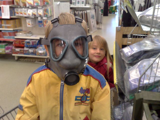 Hong Kongissa oli myynnissä vanhoja armeijan kaasunaamareita. Pikkupoikakin löysi ne.....