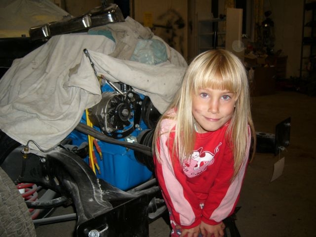 Girl and V8. My daughter Heidi wanted to be photographed with the "big engine" while visiting Daddy's garage :-)